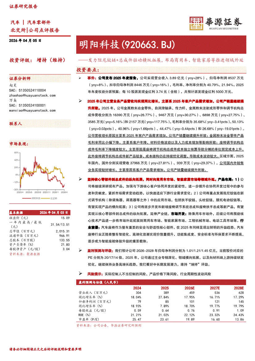 华源证券-明阳科技-920663-发力阻尼铰链+总成件驱动横纵拓展,布局商用车、智能家居等推进领域外延-260405