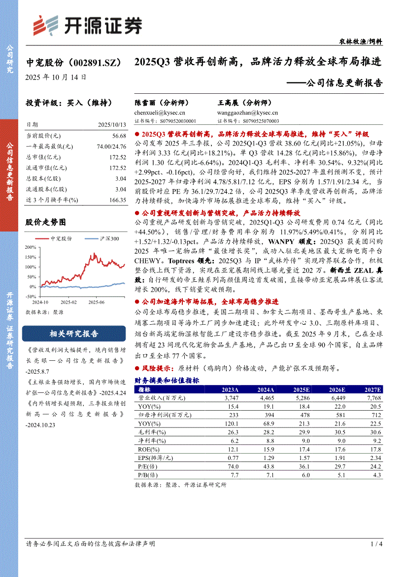 中宠股份:开源证券-中宠股份-002891-公司信息更新报告:2025Q3营收再创新高,品牌活力释放全球布局推进-251014