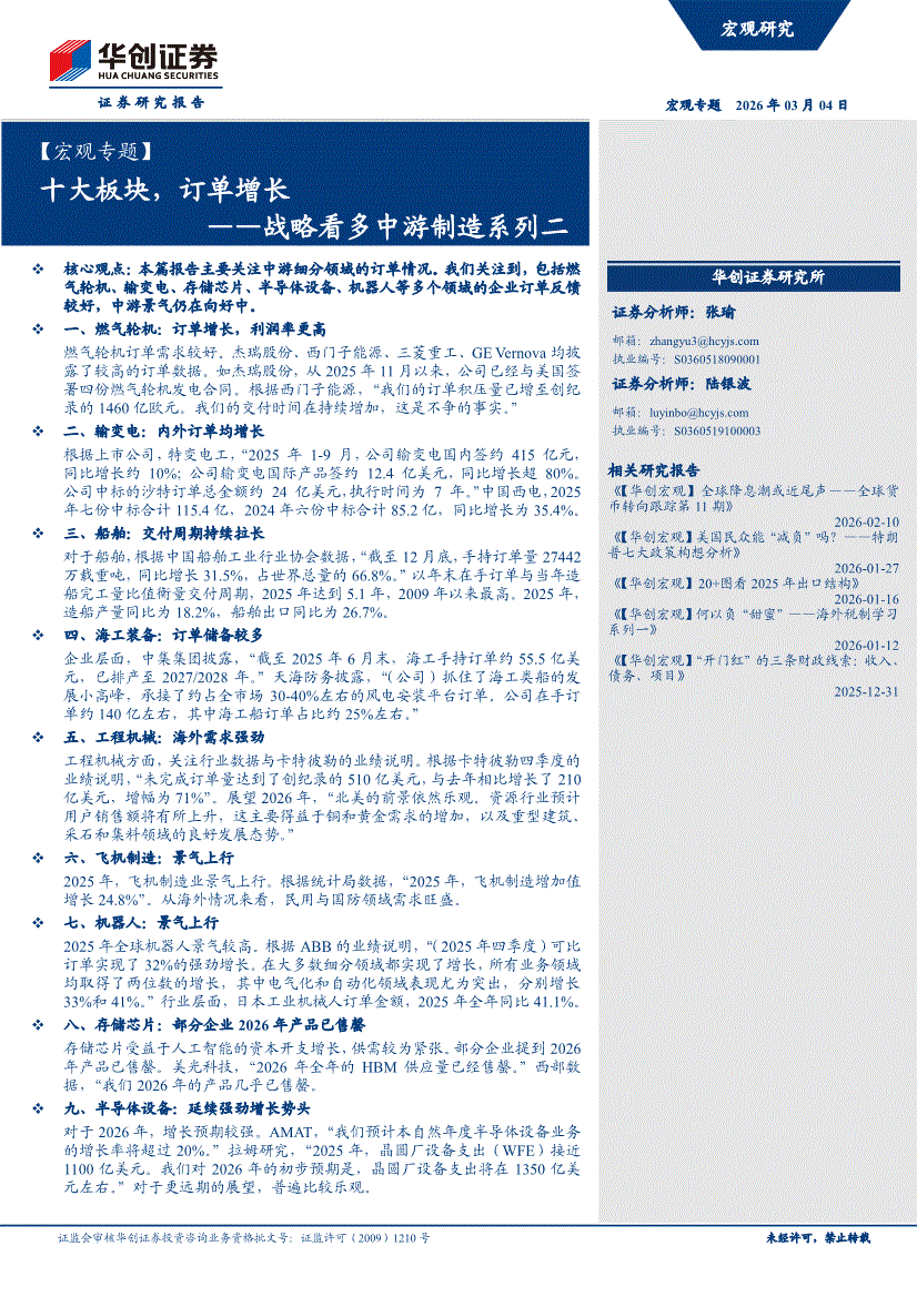 华创证券-【宏观专题】战略看多中游制造系列二:十大板块,订单增长-260304