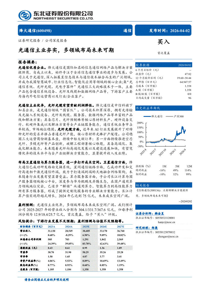 烽火通信:东北证券-烽火通信-600498-光通信主业夯实,多领域布局未来可期-260402