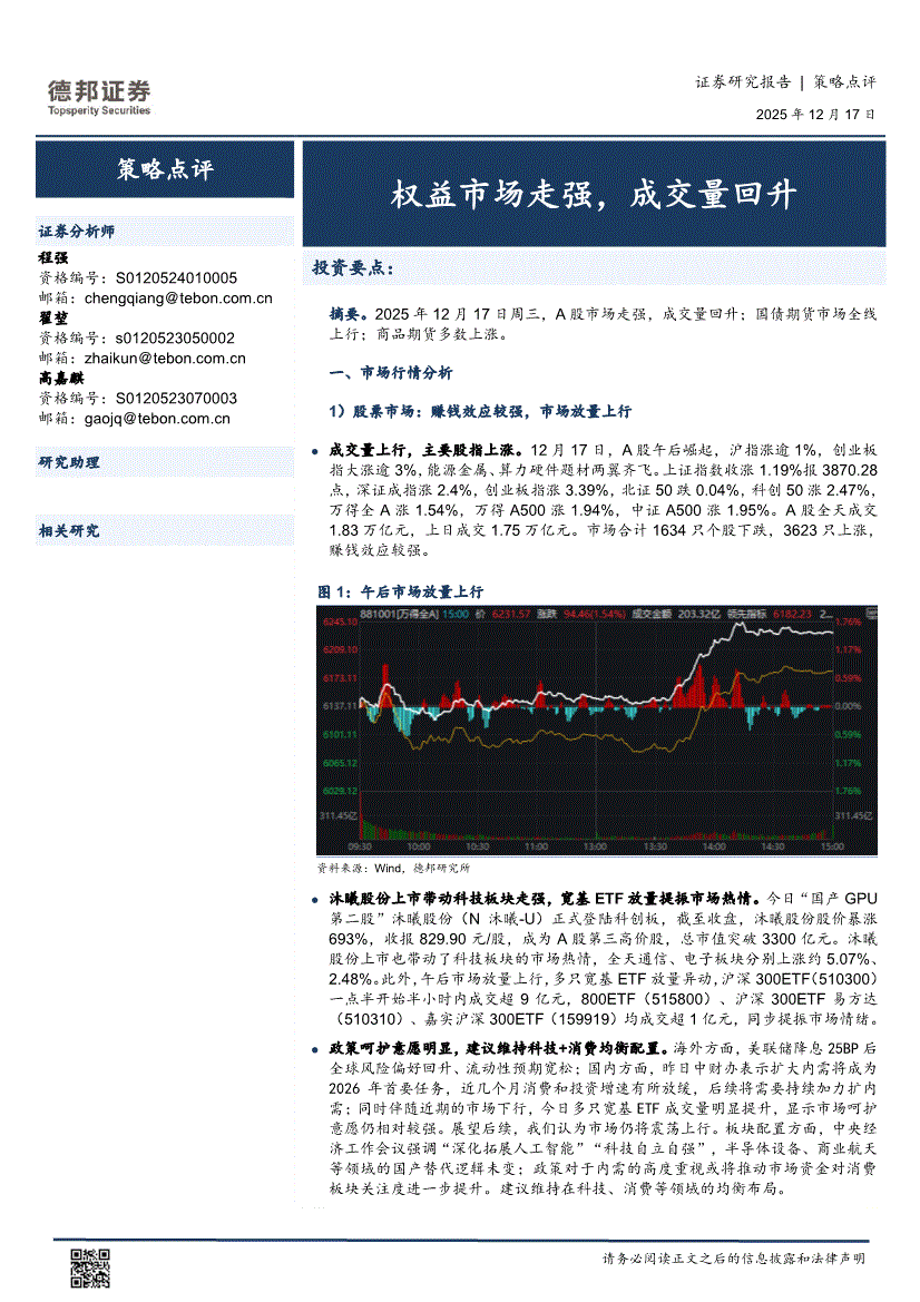 德邦证券-策略点评:权益市场走强,成交量回升-251217