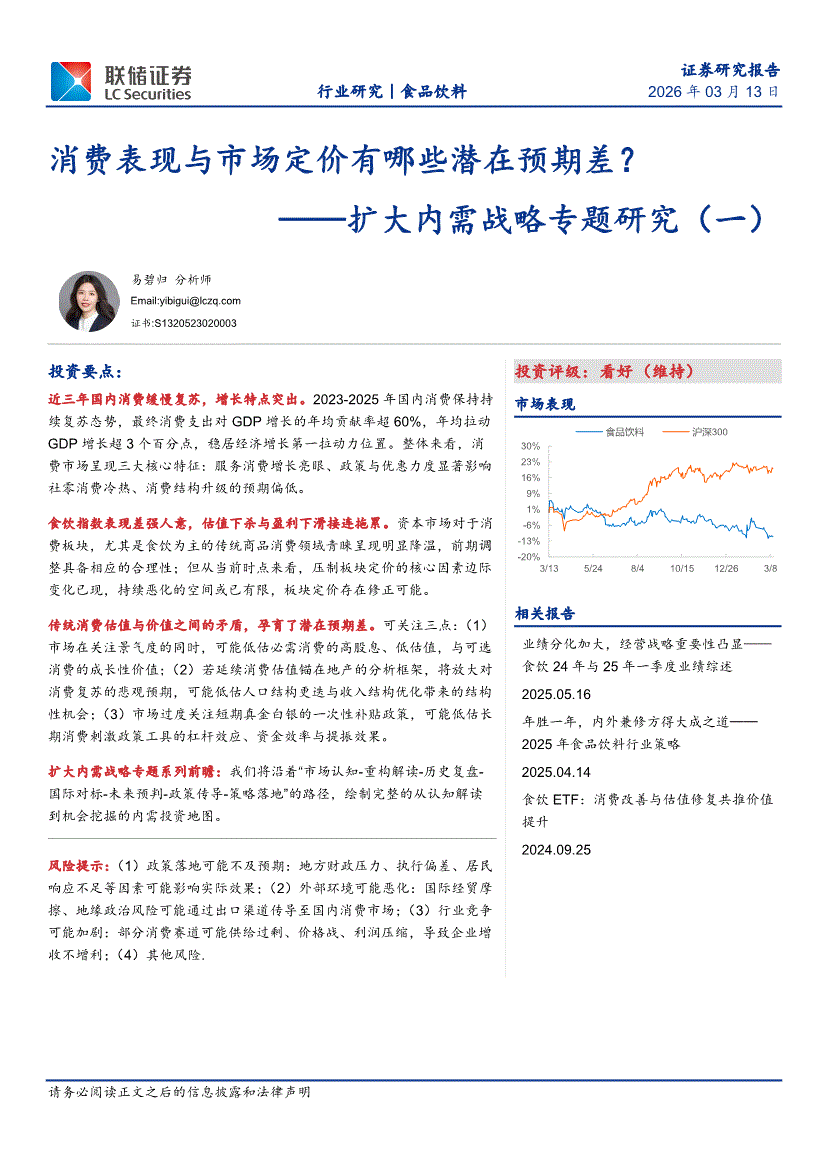 食品饮料行业:联储证券-食品饮料行业扩大内需战略专题研究(一):消费表现与市场定价有哪些潜在预期差?-260313