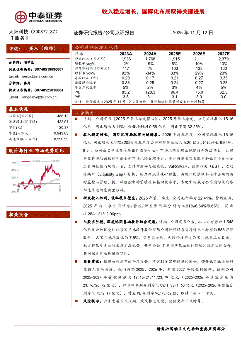 天阳科技:中泰证券-天阳科技-300872-收入稳定增长,国际化布局取得关键进展-251112
