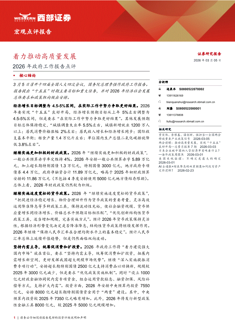 西部证券-2026年政府工作报告点评:着力推动高质量发展-260305