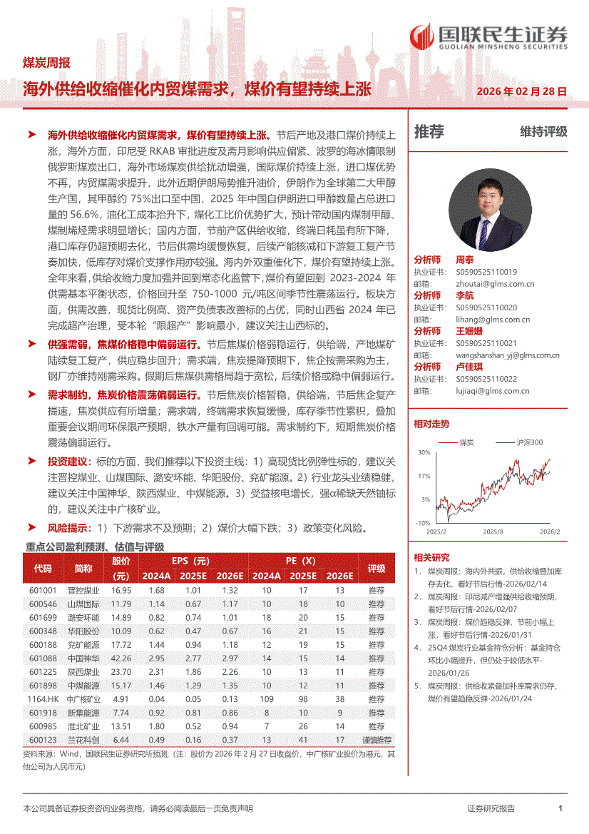 煤炭行业:国联民生证券-煤炭行业周报:海外供给收缩催化内贸煤需求,煤价有望持续上涨-260228