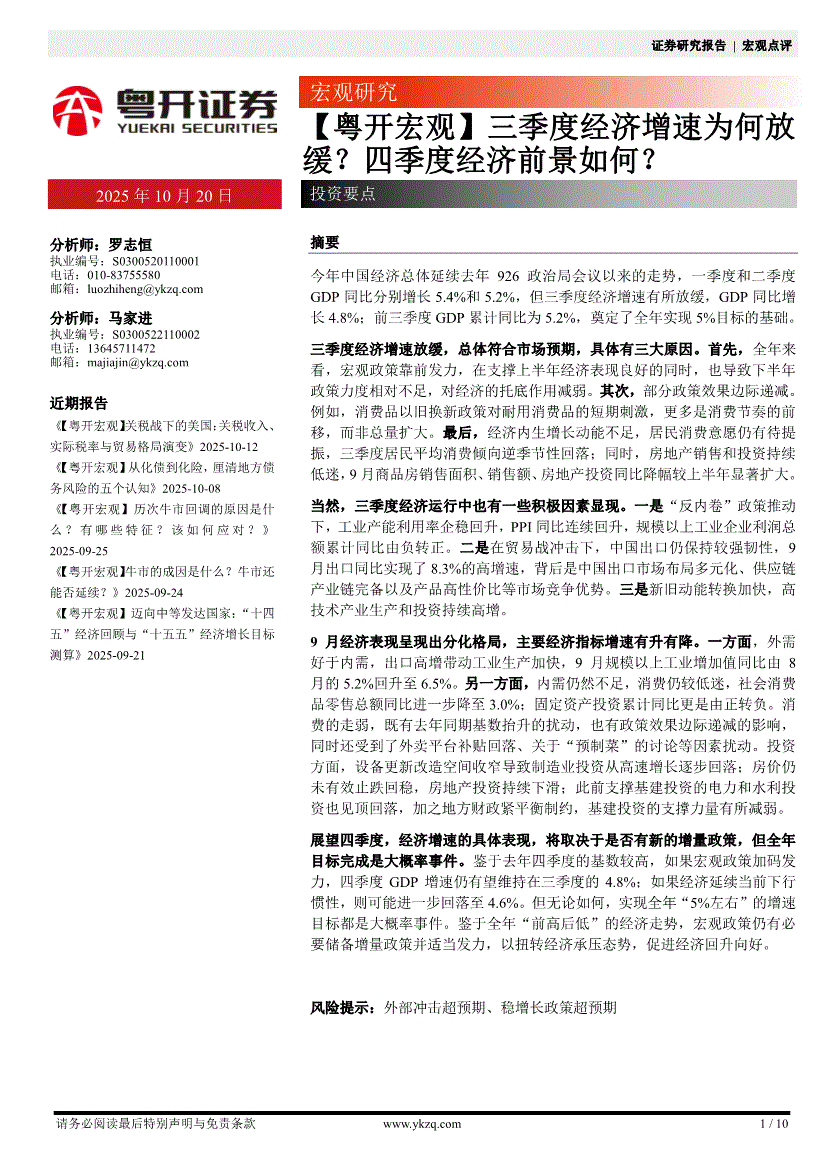 粤开证券-【粤开宏观】三季度经济增速为何放缓?四季度经济前景如何?-251020