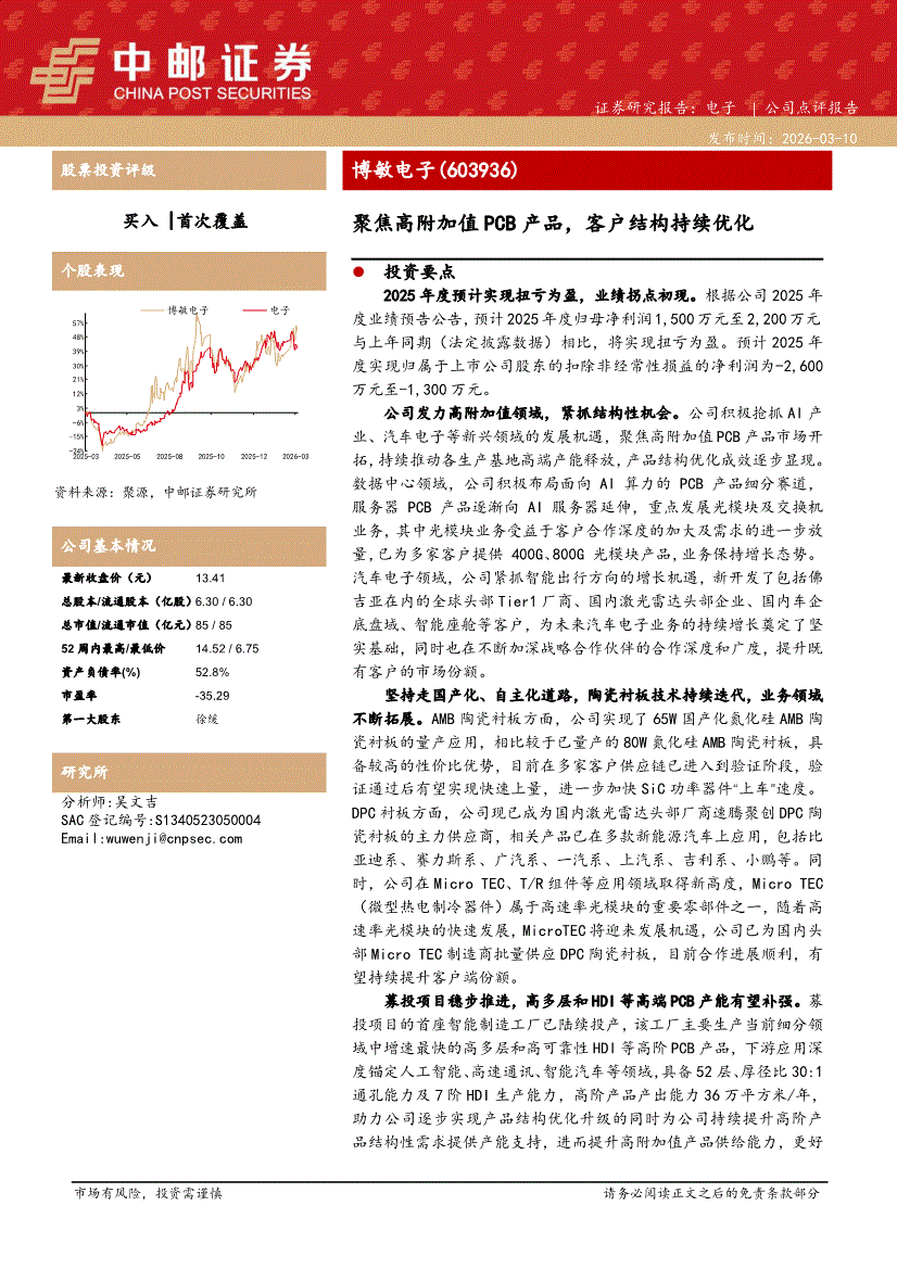 博敏电子:中邮证券-博敏电子-603936-聚焦高附加值PCB产品,客户结构持续优化-260310
