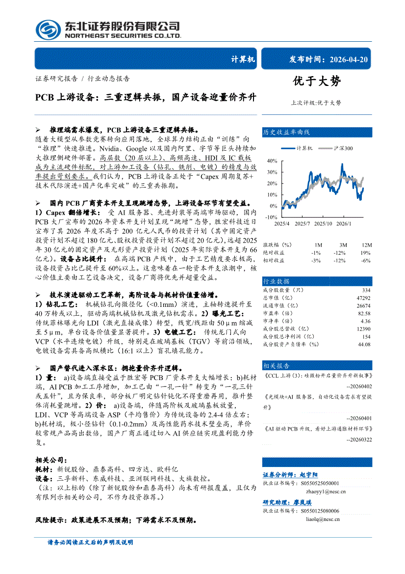 计算机行业:东北证券-计算机行业PCB上游设备:三重逻辑共振,国产设备迎量价齐升-260420