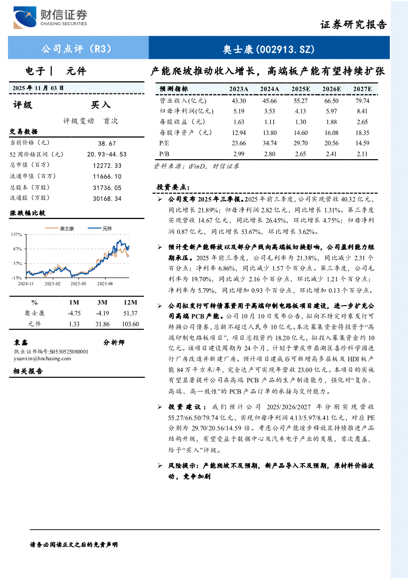 奥士康:财信证券-奥士康-002913-产能爬坡推动收入增长,高端板产能有望持续扩张-251103