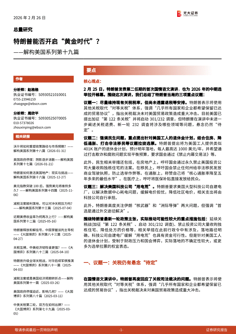 光大证券-解构美国系列第十九篇:特朗普能否开启“黄金时代”?-260226