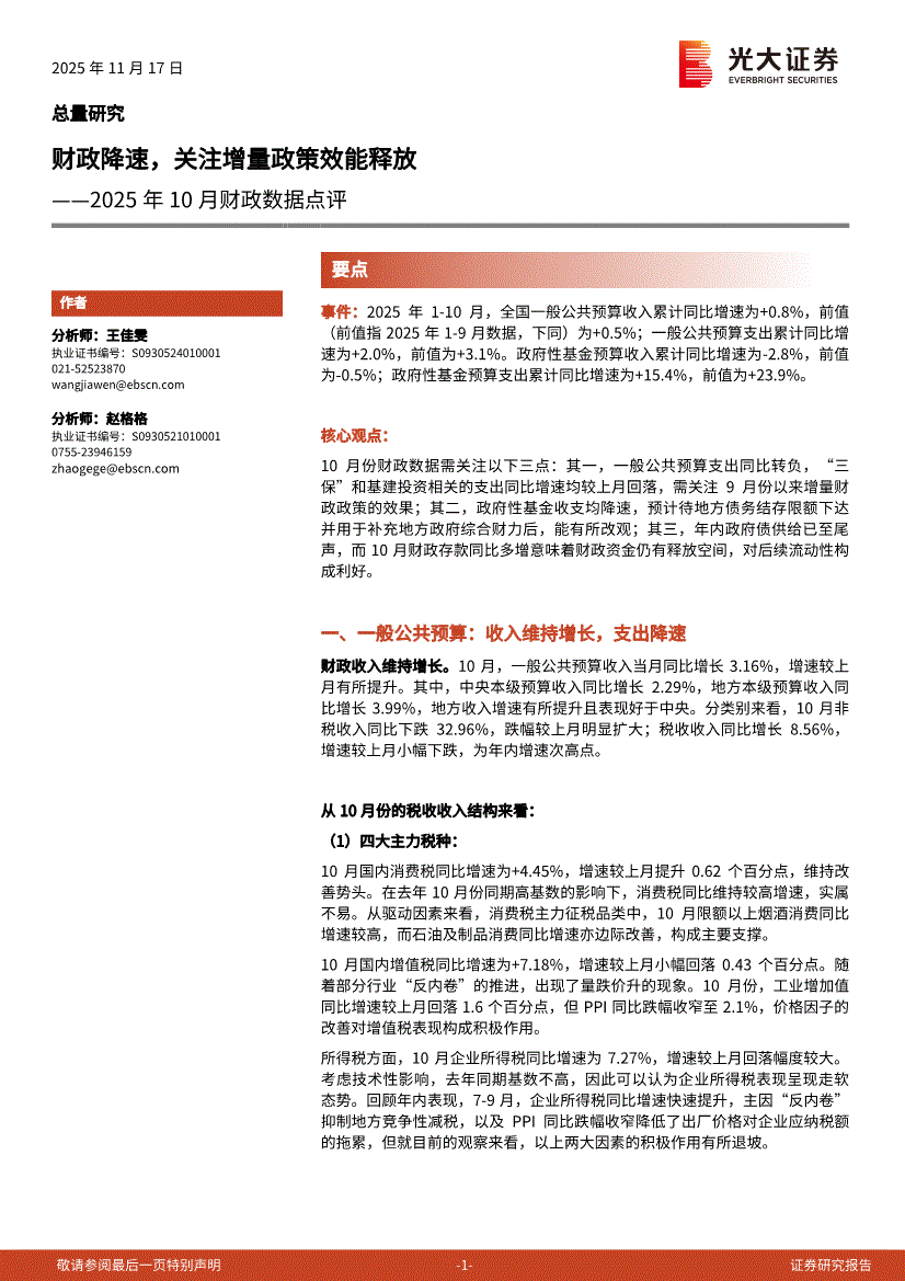 光大证券-2025年10月财政数据点评:财政降速,关注增量政策效能释放-251117