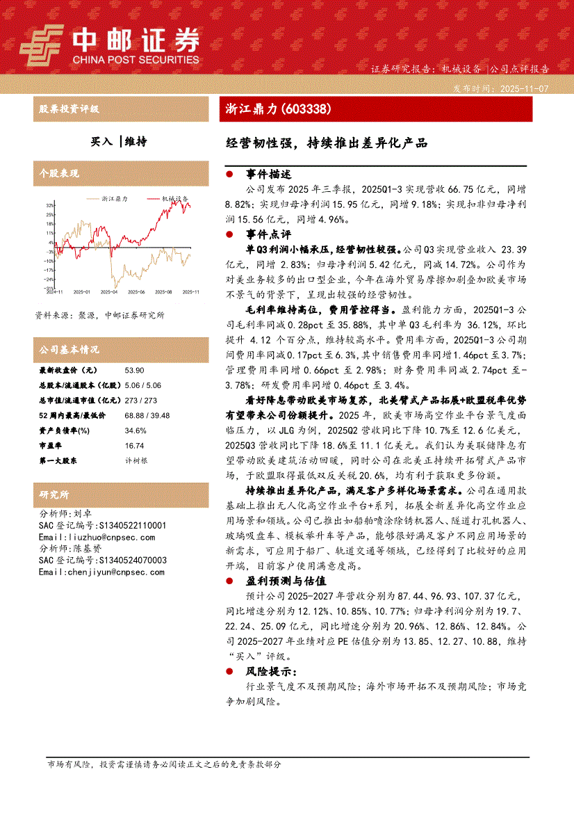 浙江鼎力:中邮证券-浙江鼎力-603338-经营韧性强,持续推出差异化产品-251107