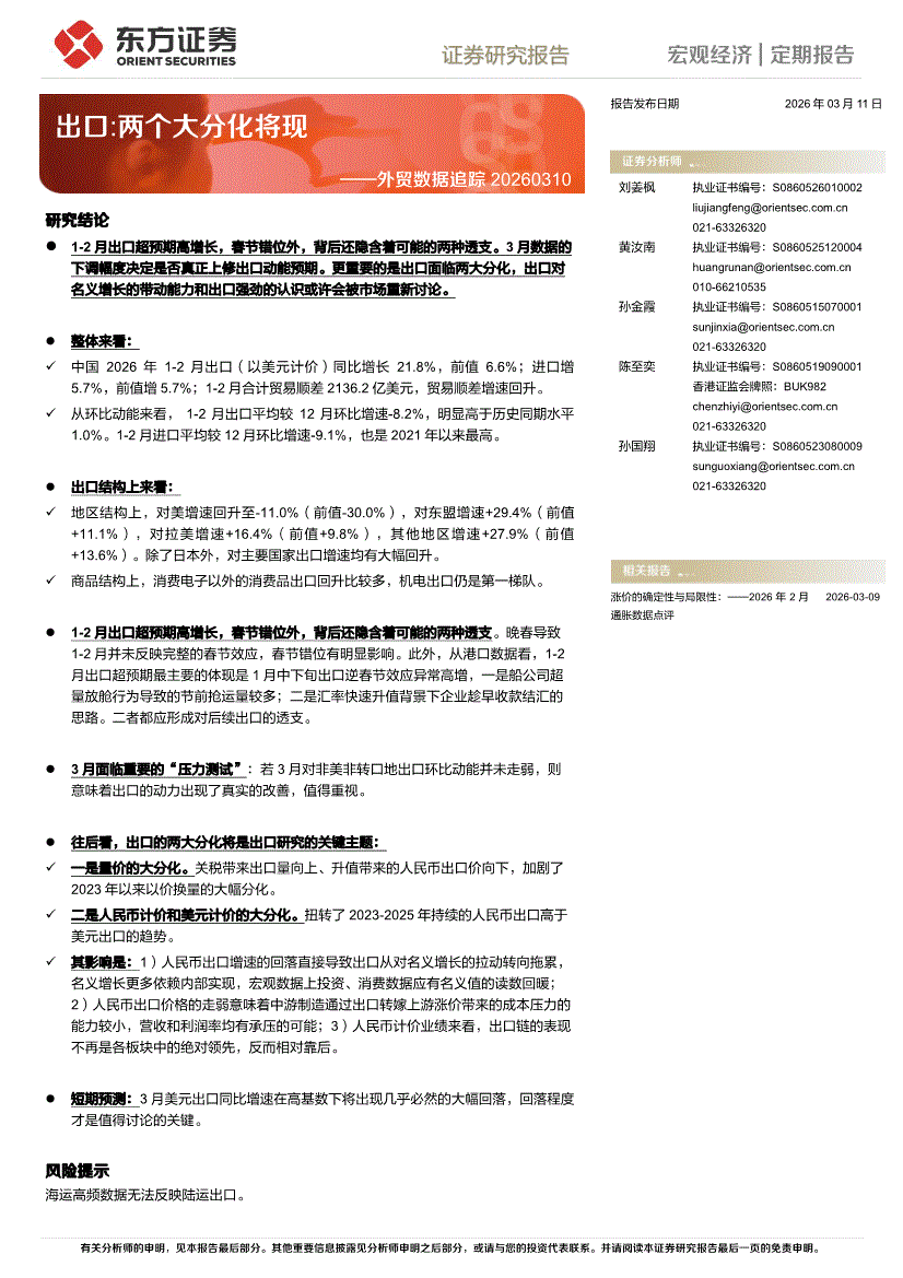 东方证券-外贸数据追踪:出口,两个大分化将现-260311