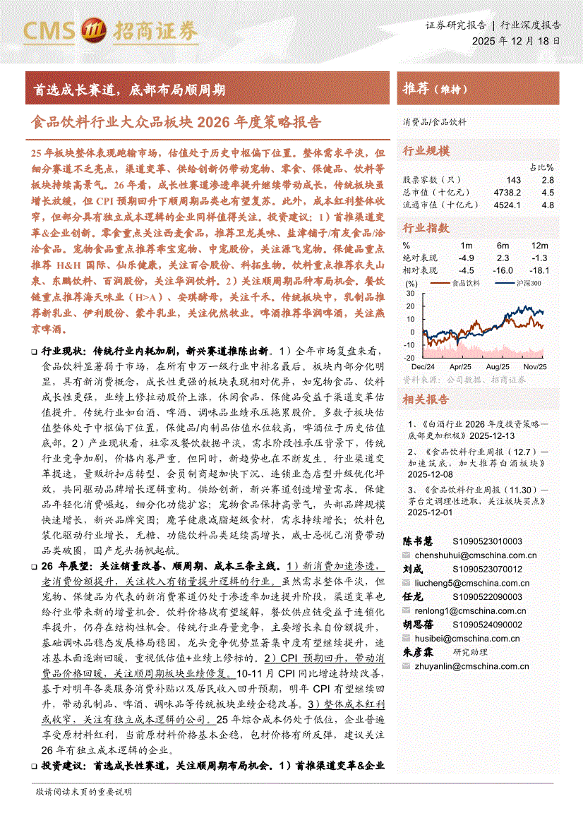 食品饮料行业:招商证券-食品饮料行业大众品板块2026年度策略报告:首选成长赛道,底部布局顺周期-251218