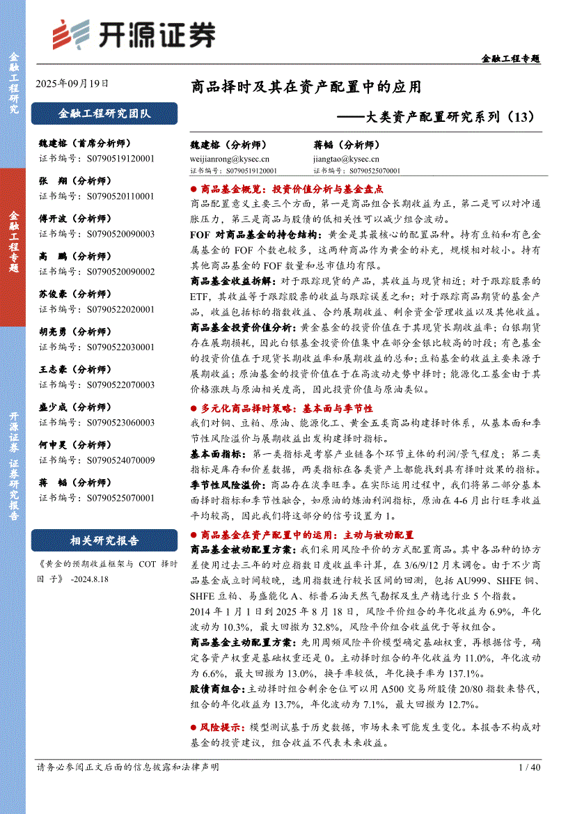 开源证券-大类资产配置研究系列(13):商品择时及其在资产配置中的应用-250919