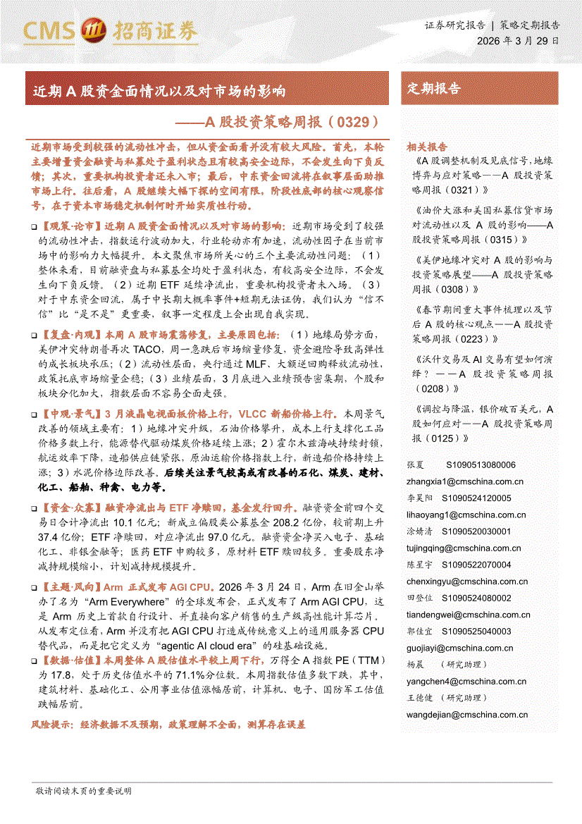 招商证券-A股投资策略周报:近期A股资金面情况以及对市场的影响-260329