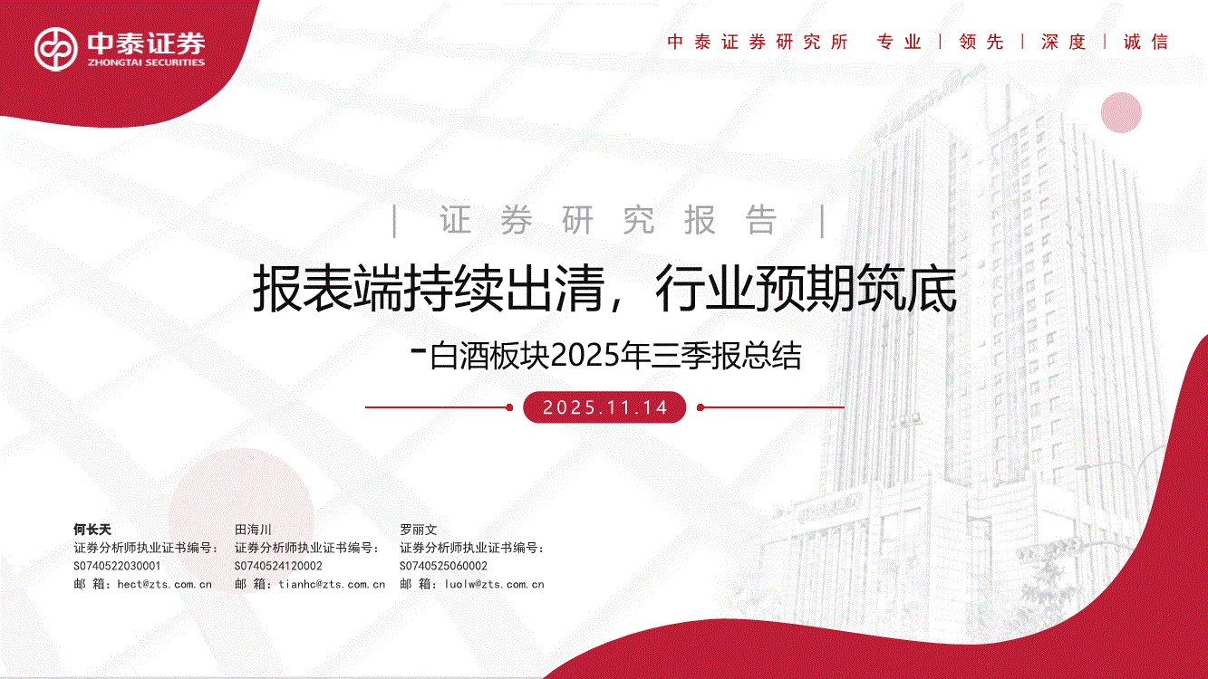 白酒行业:中泰证券-白酒行业板块2025年三季报总结:报表端持续出清,行业预期筑底-251114
