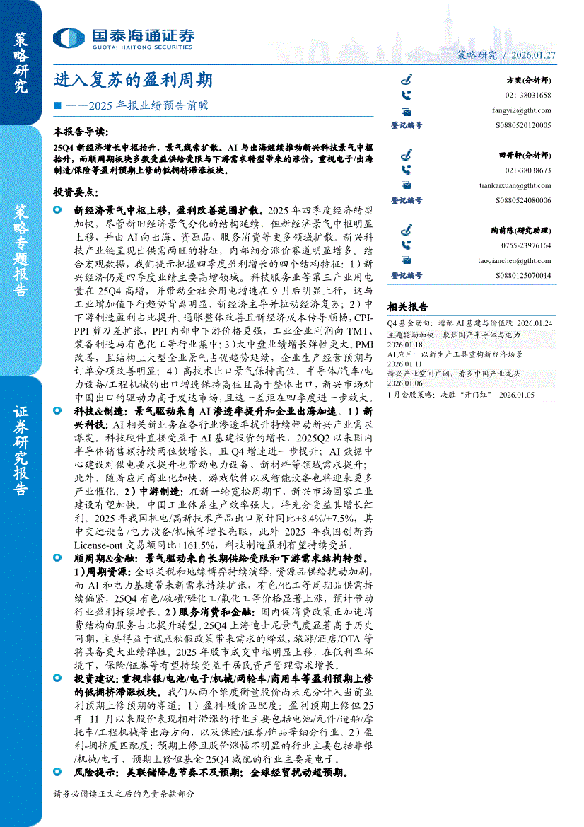 国泰海通证券-2025年报业绩预告前瞻:进入复苏的盈利周期-260127