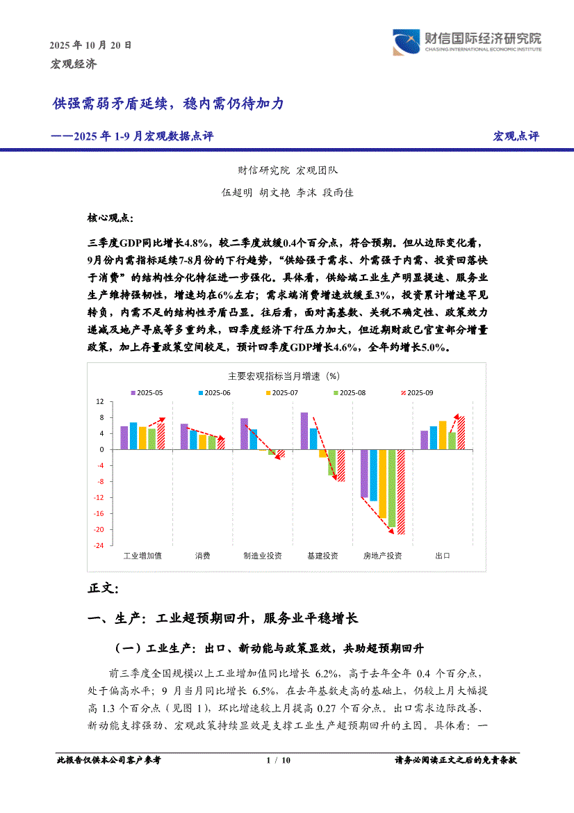 财信国际经济研究院-2025年1~9月宏观数据点评:供强需弱矛盾延续,稳内需仍待加力-251020