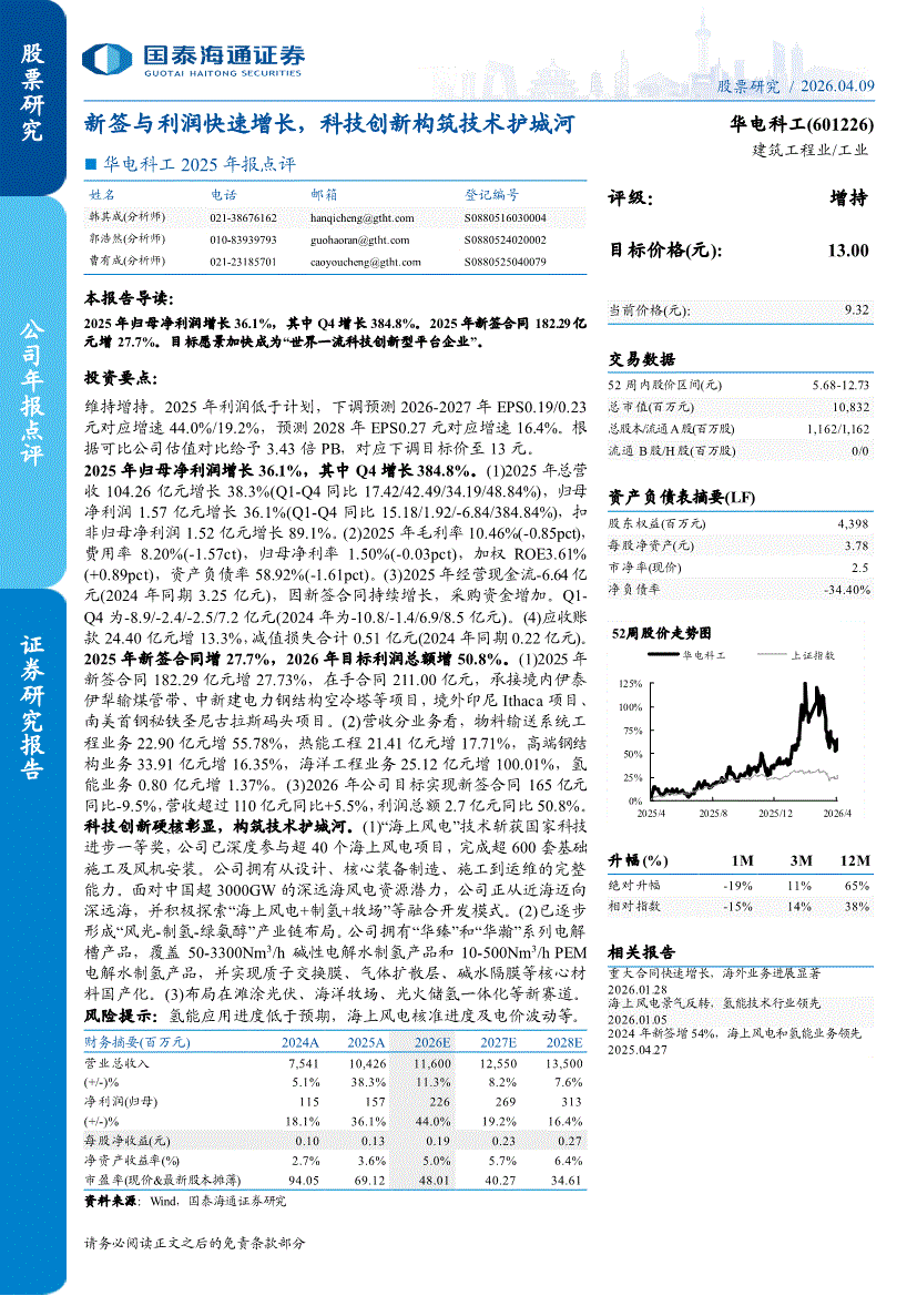 华电科工:国泰海通证券-华电科工-601226-2025年报点评:新签与利润快速增长,科技创新构筑技术护城河-260409