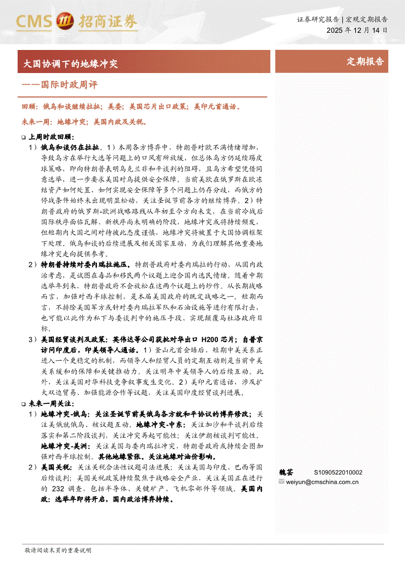 招商证券-国际时政周评:大国协调下的地缘冲突-251214
