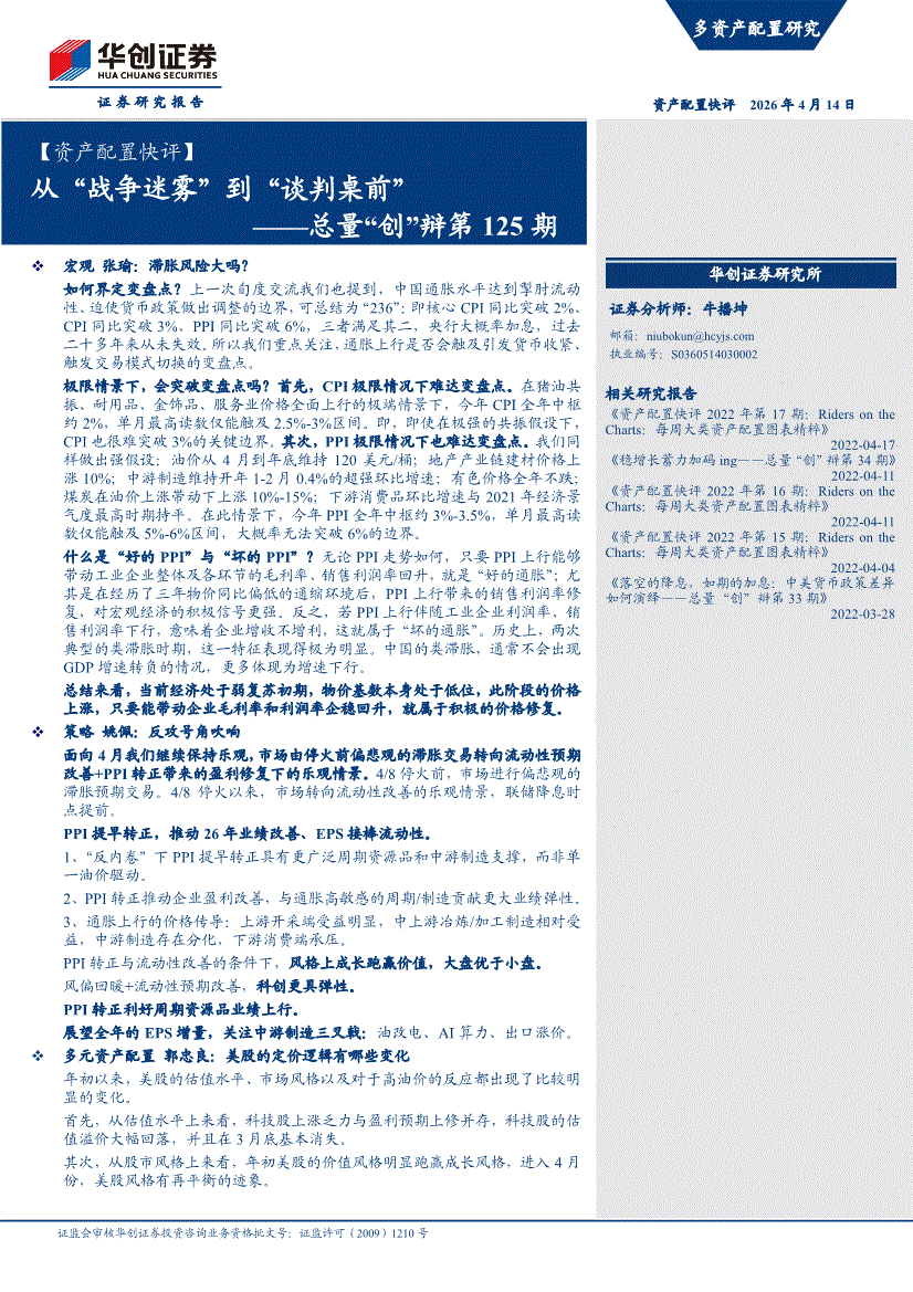 华创证券-【资产配置快评】总量“创”辩第125期:从“战争迷雾”到“谈判桌前”-260414