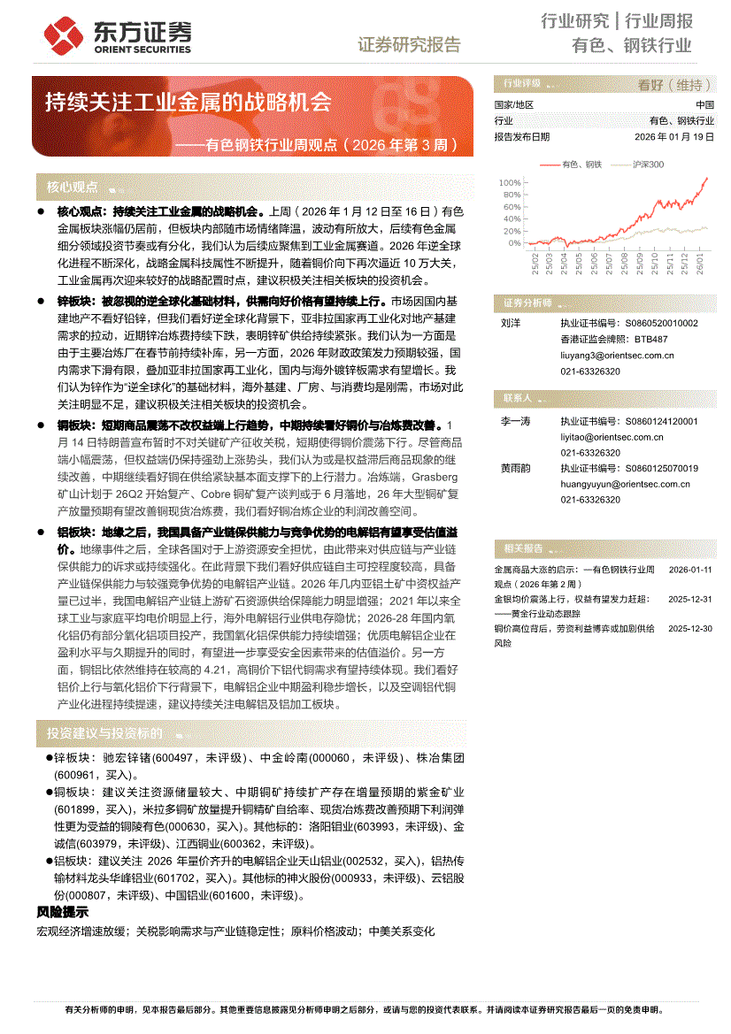 有色、钢铁行业:东方证券-有色钢铁行业周观点(2026年第3周):持续关注工业金属的战略机会-260119