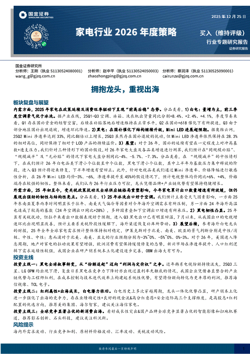 家电行业:国金证券-家电行业2026年度策略:拥抱龙头,重视出海-251225