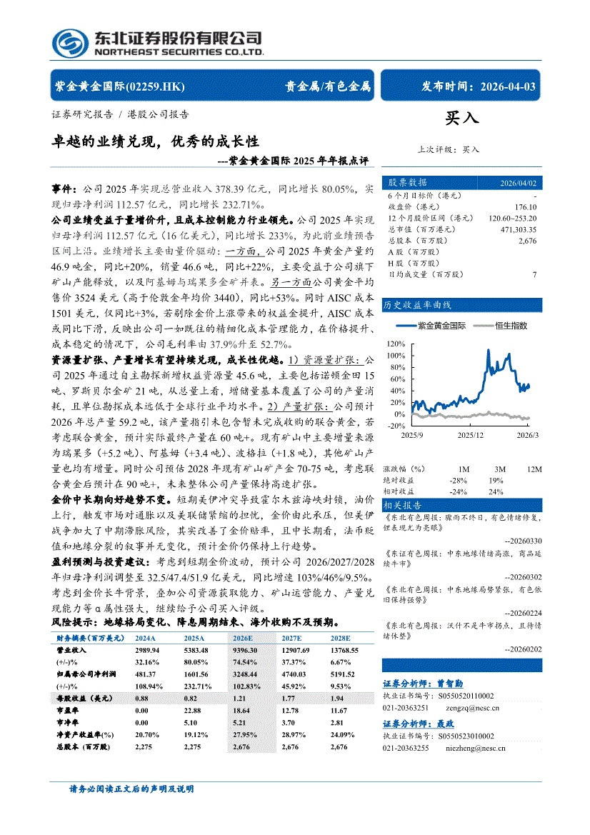 紫金黄金国际:东北证券-紫金黄金国际-2259.HK-2025年年报点评:卓越的业绩兑现,优秀的成长性-260403