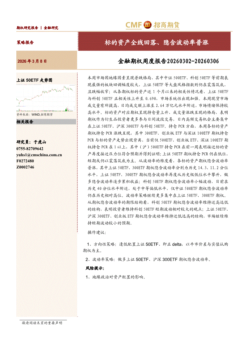 招商期货-金融期权周度报告:标的资产全线回落、隐含波动率普涨-260308