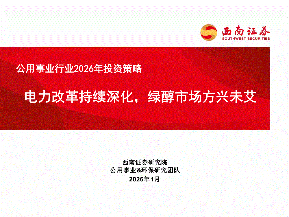 公用事业行业:西南证券-公用事业行业2026年投资策略:电力改革持续深化,绿醇市场方兴未艾-260114