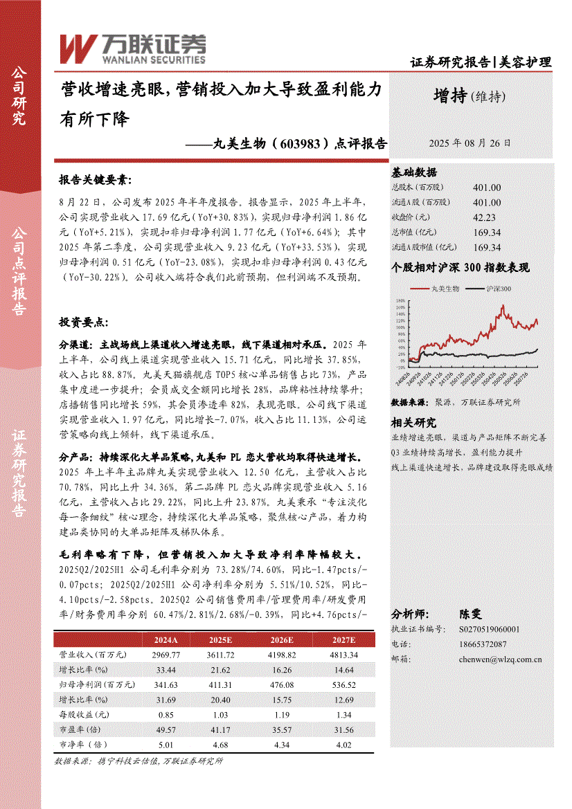 丸美生物:万联证券-丸美生物-603983-点评报告:营收增速亮眼,营销投入加大导致盈利能力有所下降-250826
