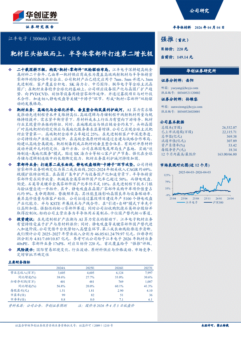 江丰电子:华创证券-江丰电子-300666-深度研究报告:靶材巨头拾级而上,半导体零部件打造第二增长极-260404