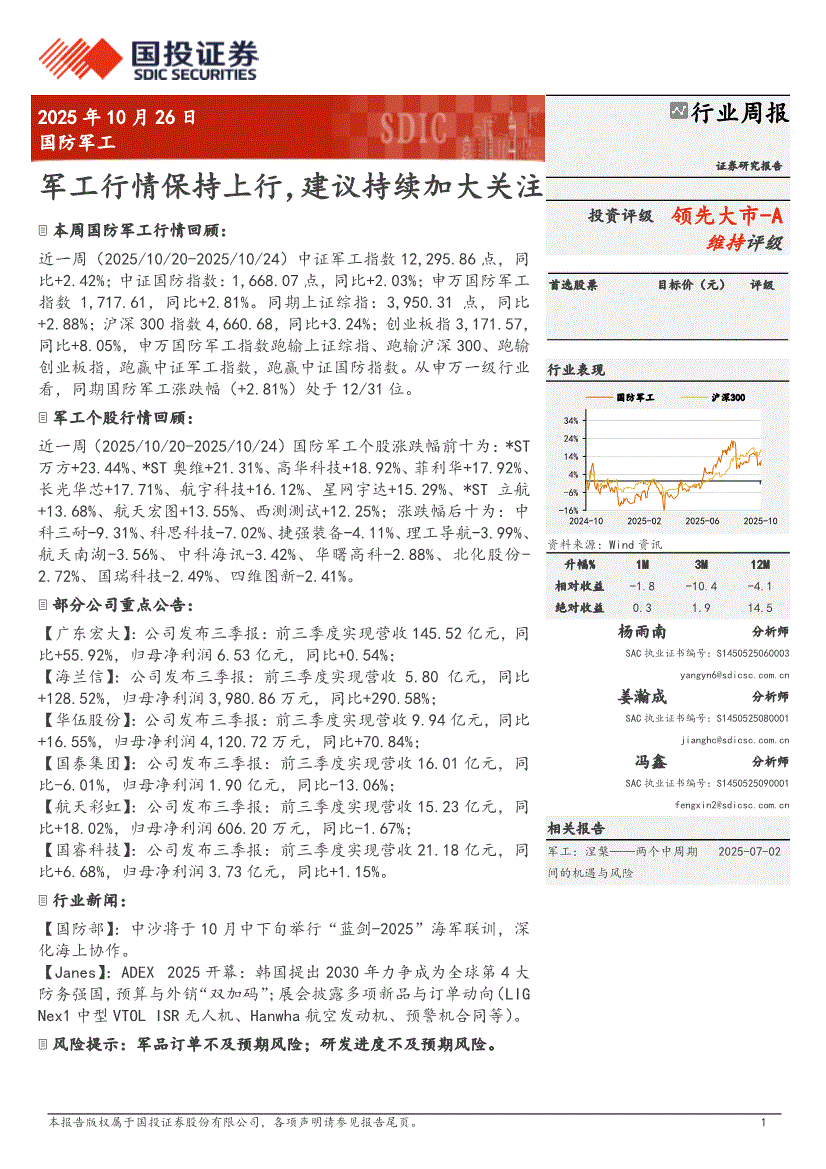 国防军工行业:国投证券-国防军工行业周报:军工行情保持上行,建议持续加大关注-251026