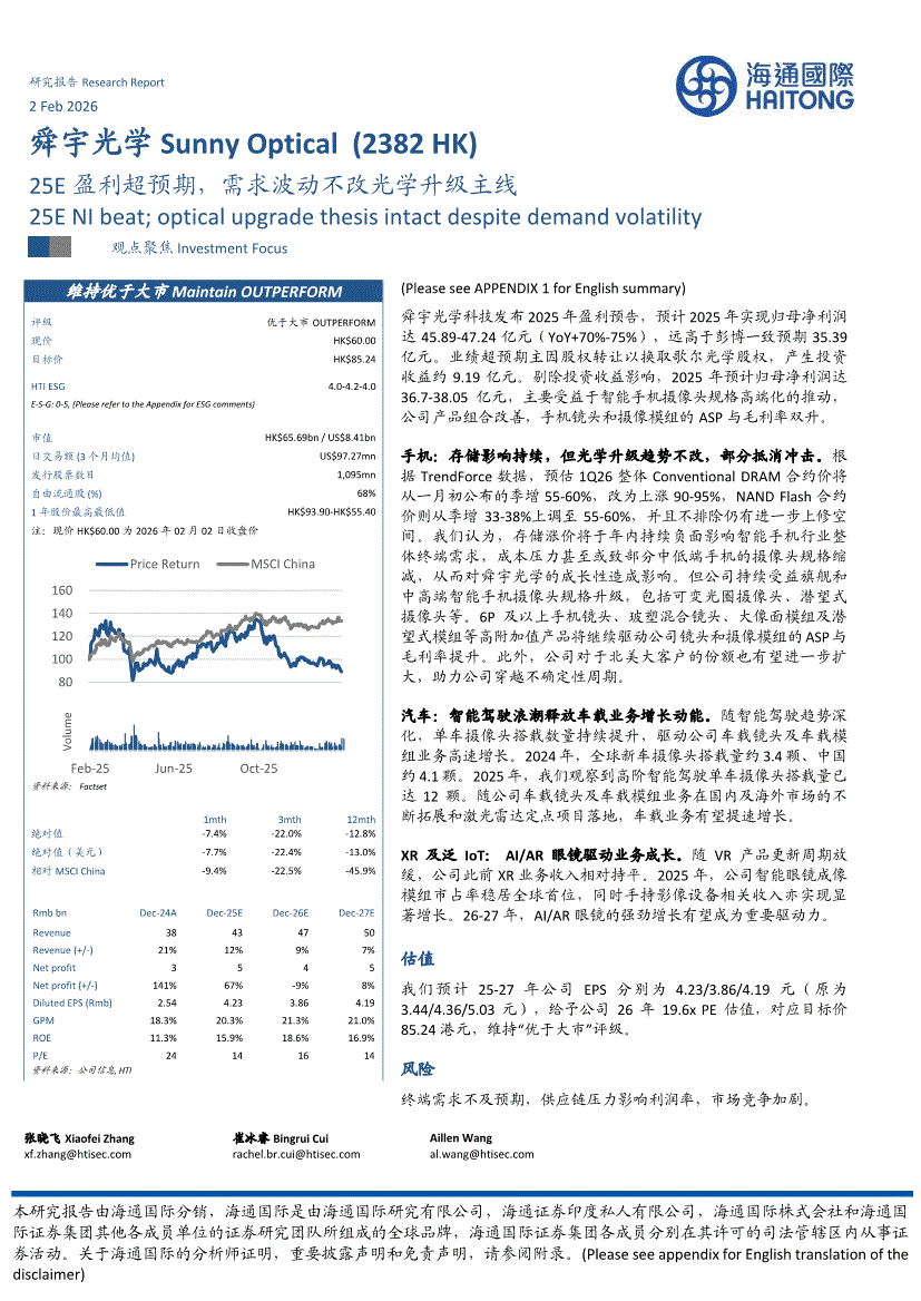 舜宇光学:海通国际-舜宇光学-2382.HK-25E盈利超预期,需求波动不改光学升级主线-260202