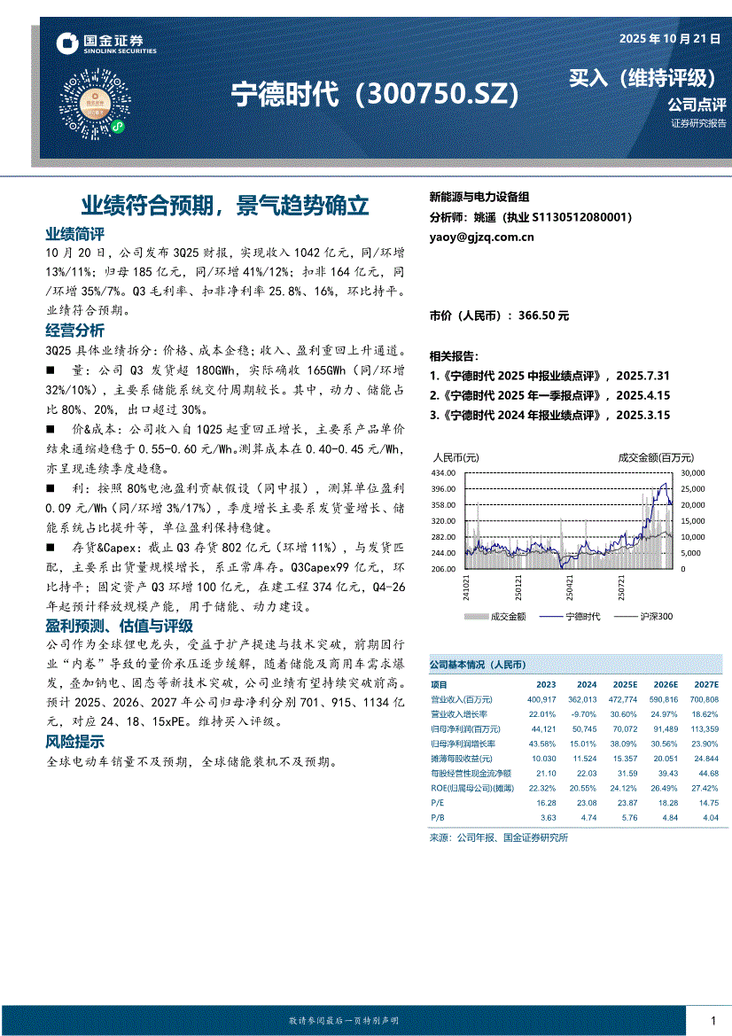 宁德时代:国金证券-宁德时代-300750-业绩符合预期,景气趋势确立-251021