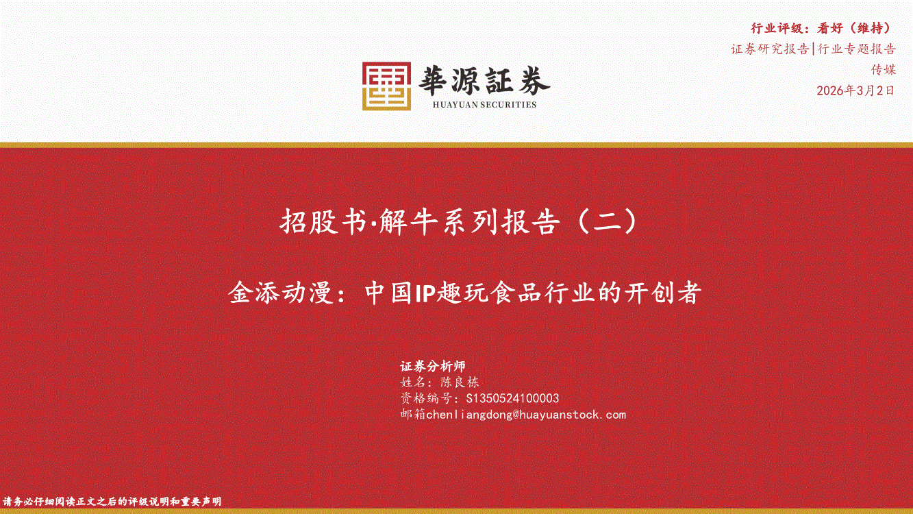 传媒行业:华源证券-传媒行业招股书·解牛系列报告(二):金添动漫,中国IP趣玩食品行业的开创者-260302