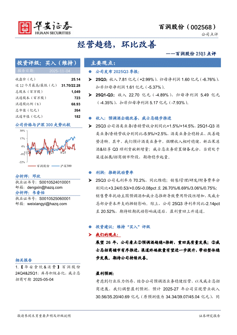 百润股份:华安证券-百润股份-002568-25Q3点评:经营趋稳,环比改善-251104