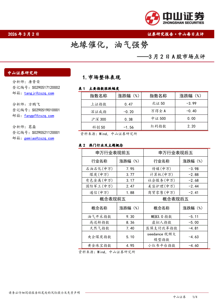 中山证券-3月2日A股市场点评:地缘催化,油气强势-260302