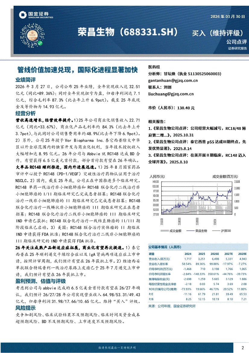 荣昌生物:国金证券-荣昌生物-688331-管线价值加速兑现,国际化进程显著加快-260330