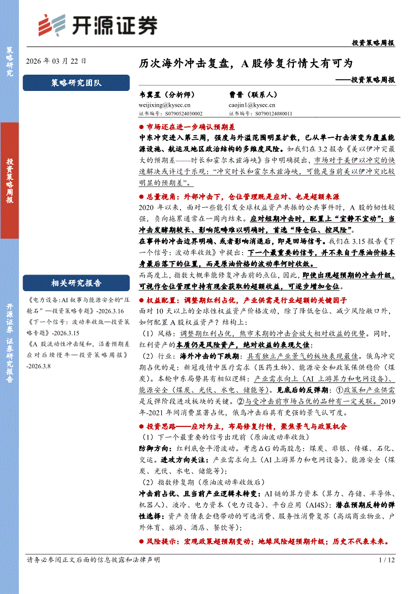 开源证券-投资策略周报:历次海外冲击复盘,A股修复行情大有可为-260322