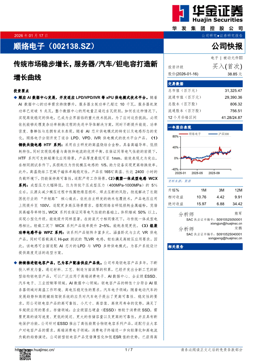顺络电子:华金证券-顺络电子-002138-传统市场稳步增长,服务器/汽车/钽电容打造新-260117