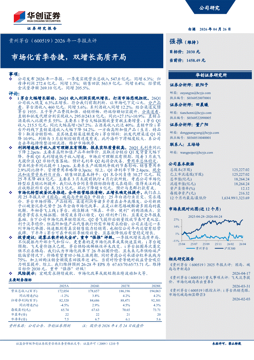 贵州茅台:华创证券-贵州茅台-600519-2026年一季报点评:市场化首季告捷,双增长高质开局-260426