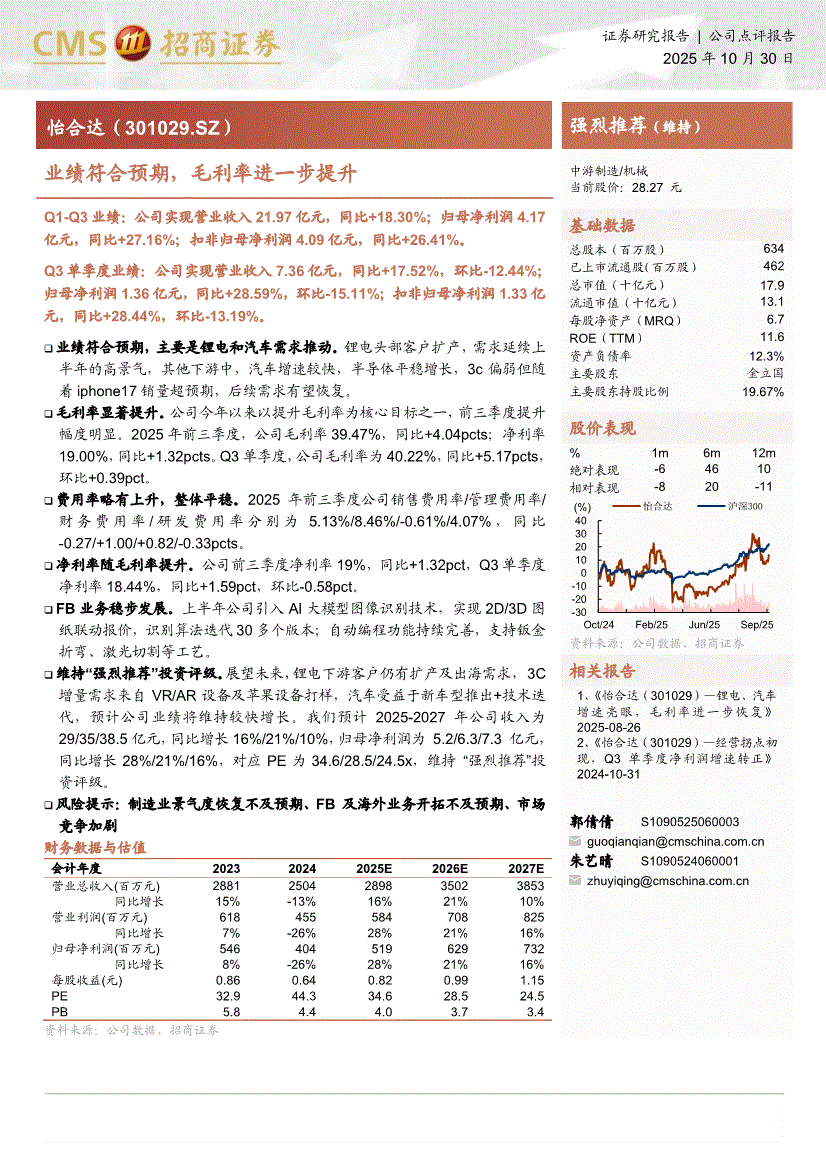 怡合达:招商证券-怡合达-301029-业绩符合预期,毛利率进一步提升-251030