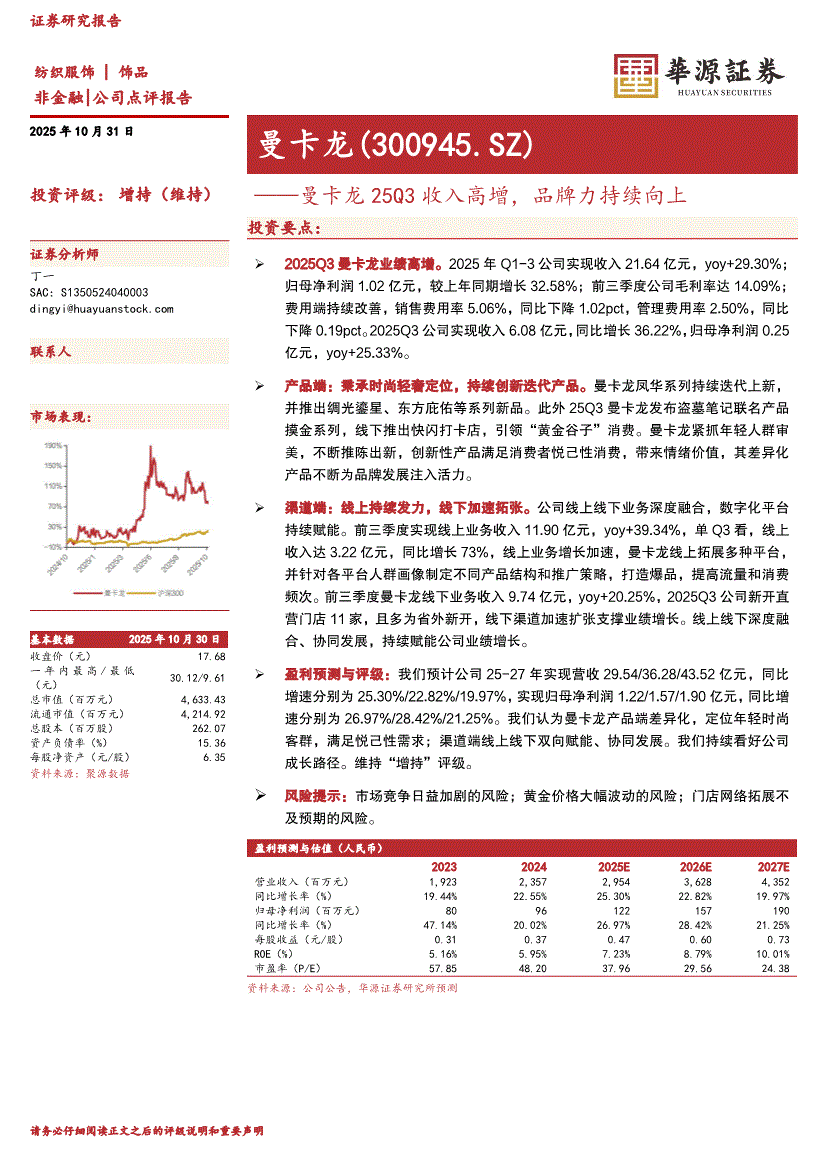 曼卡龙:华源证券-曼卡龙-300945-曼卡龙25Q3收入高增,品牌力持续向上-251031