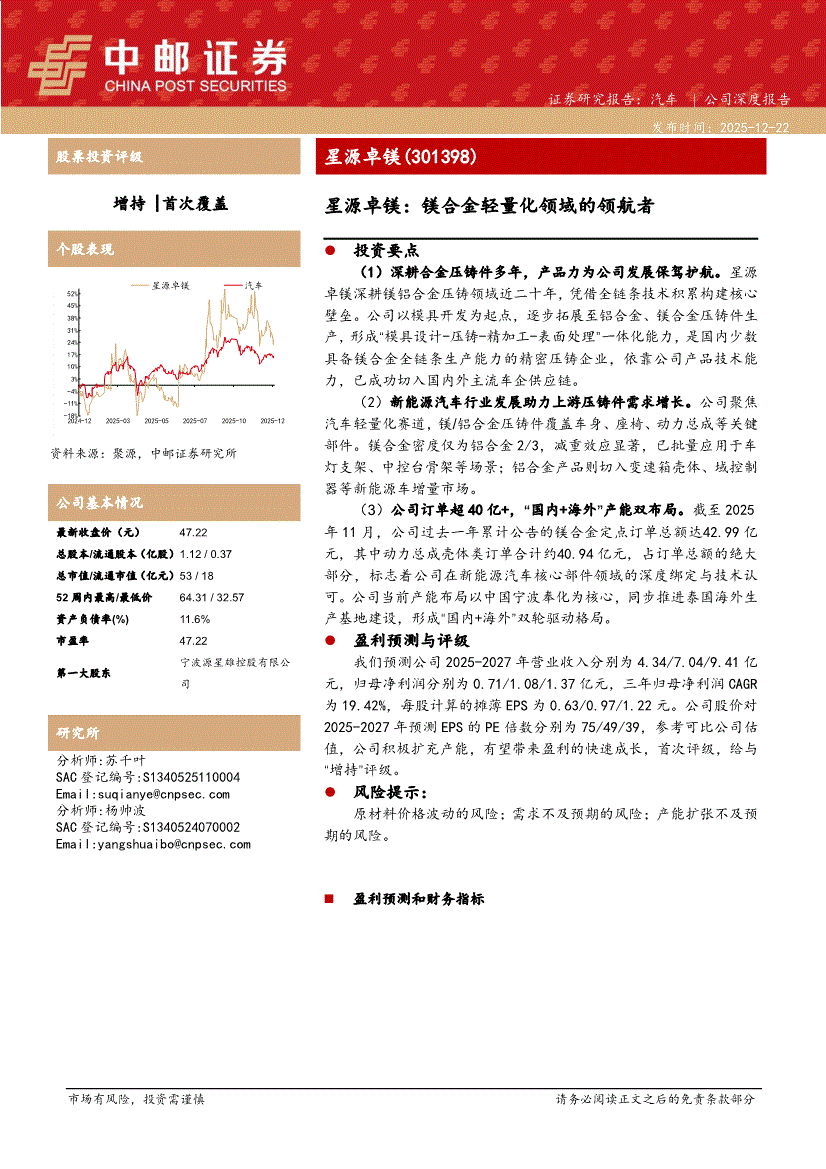 星源卓镁:中邮证券-星源卓镁-301398-星源卓镁:镁合金轻量化领域的领航者-251222
