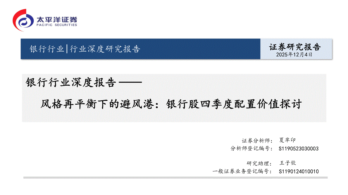 银行业:太平洋证券-银行行业深度报告:风格再平衡下的避风港,银行股四季度配置价值探讨-251204