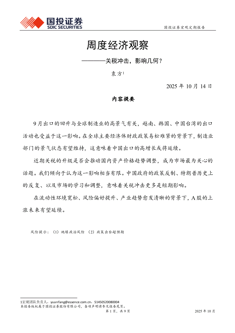 国投证券-周度经济观察:关税冲击,影响几何?-251014