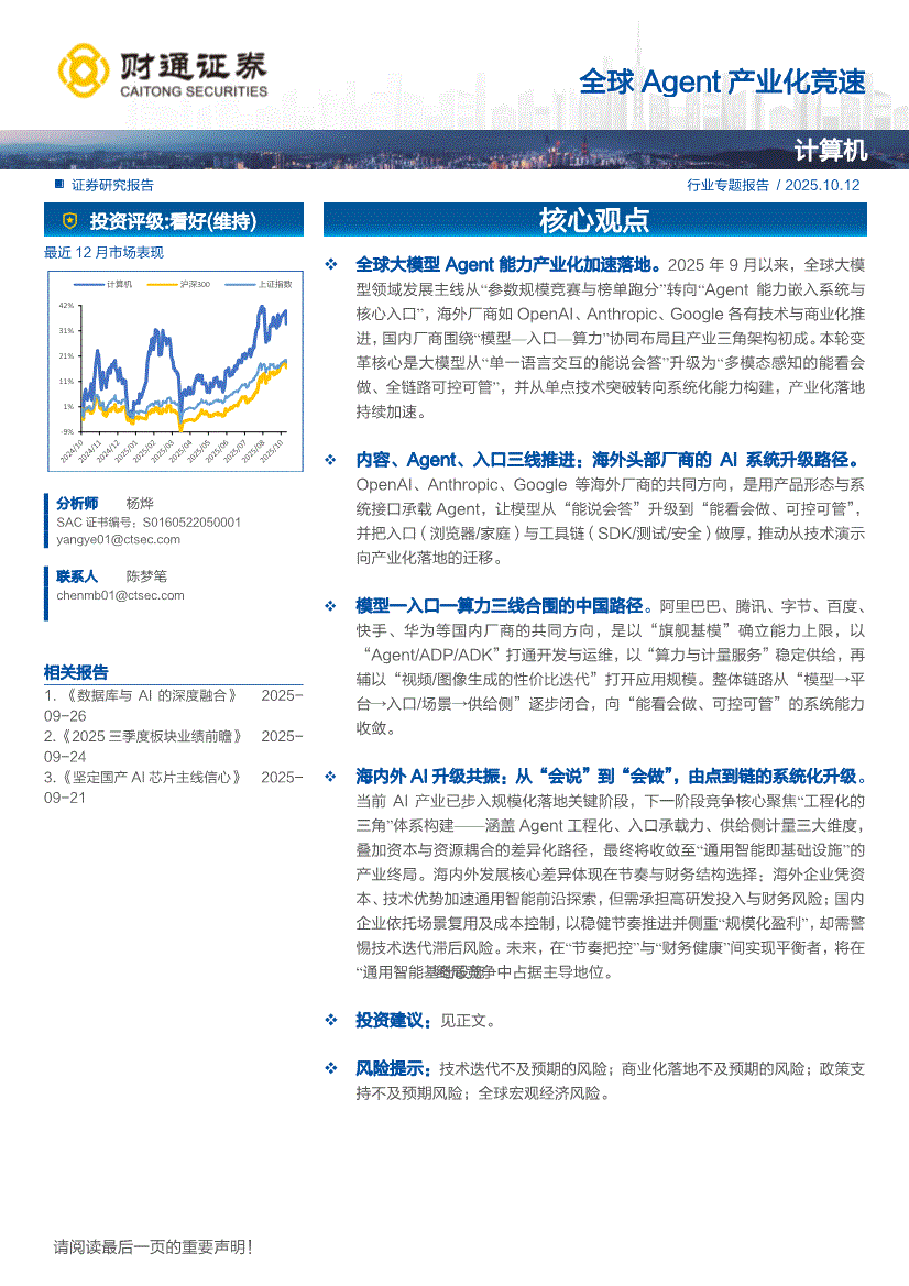 计算机行业:财通证券-计算机行业专题报告:全球Agent产业化竞速-251012