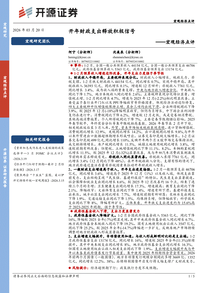 开源证券-宏观经济点评:开年财政支出释放积极信号-260320